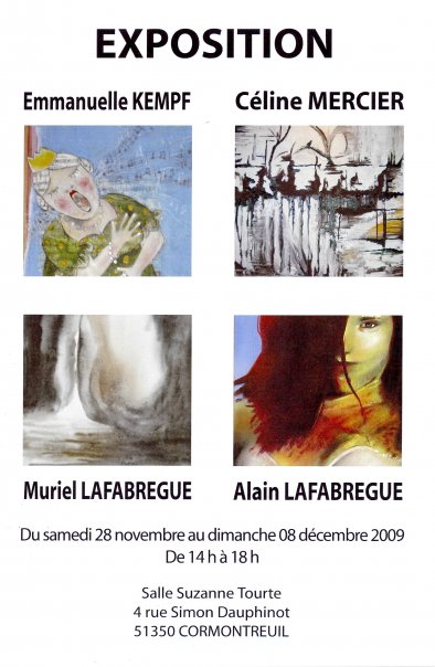 Exposition de peintures à l’huile, acryliques, pastels et aquarelles regroupant 4 artistes: Emmanuelle KEMPF, Céline MERCIER, Alain LAFABREGUE, Muriel LAFABREGUE.