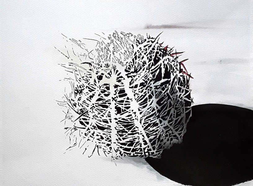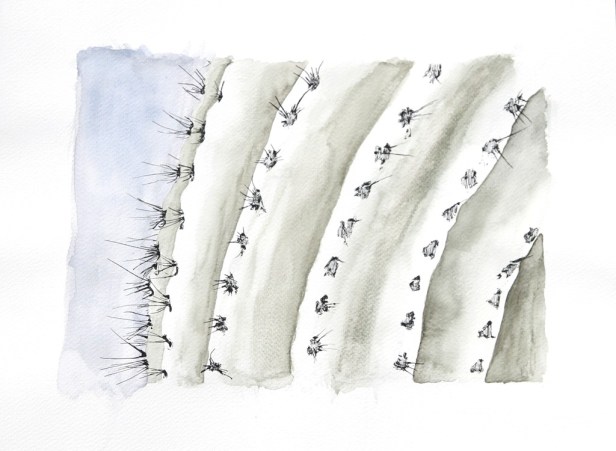 J’utilise l’encre et l’aquarelle ou la peinture à l’huile avec des outils fins (plumes, pinceaux) et j’étale le travail sur plusieurs jours pour sans cesse me recentrer sur la densité de l’émotion. Je suis toujours tendue vers la représentation qui n’apparaît qu’à la fin du travail.