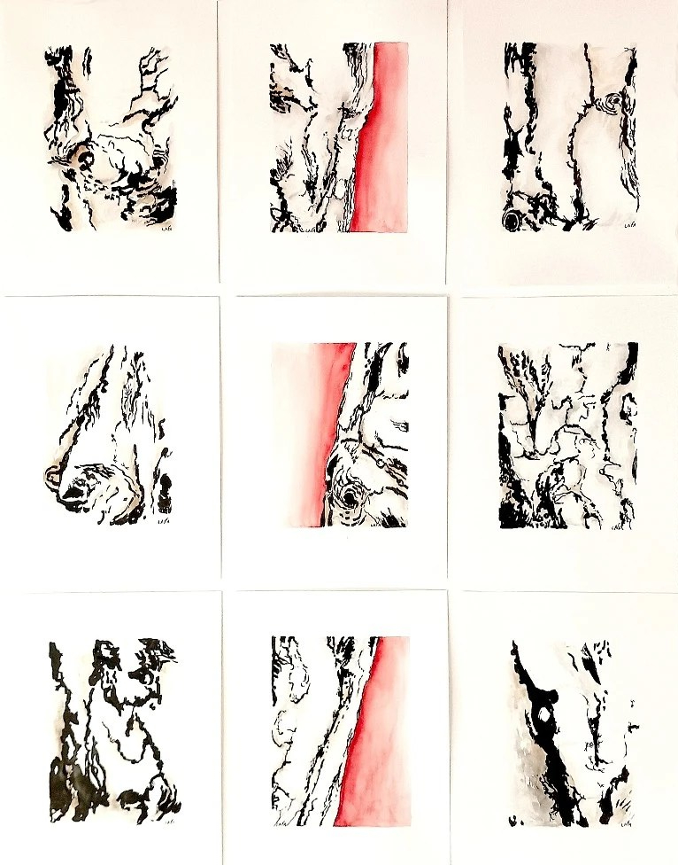 Peinture, Portfolio Série d’aquarelles et encre de chine « Pin doux » Date: 26 mars 2021Author: Muriel Lafabregue 0 Commentaires Nom: Doux Né en 1967 15 mètres de hauteur Espèce: pin noir d’Autriche Devenu Totem en 2018 à 51 ans Cliquer pour envoyer un lien par e-mail à un ami(ouvre dans une nouvelle fenêtre) E-mail Tweet